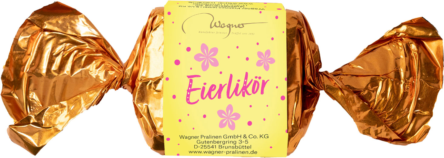 Creme mit Eierlikör, überzogen mit weißer Schokolade, alkoholhaltig, glutenfrei, Praline, hergestellt von Wagner.